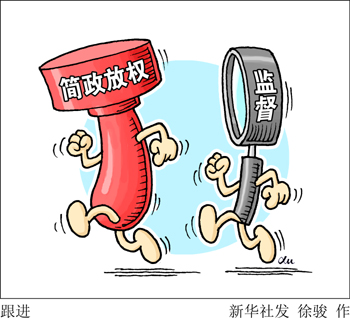 今年政府要有新作為,重點(diǎn)要抓三個方面的工作:一是全面取消非行政許可,不能法外施權(quán)。另外,國家部門授權(quán)地方政府審批的事項(xiàng)還有1200多項(xiàng),今年要砍掉200多項(xiàng)。不能像開車一樣,松了手剎,還踩著腳剎,明放暗不放。二是要推進(jìn)權(quán)力清單、責(zé)任清單,今年是在省一級公布,明年推向市縣一級,晾曬清單,讓社會監(jiān)督,也讓老百姓明白,權(quán)力不能濫用。三是要探索事中事后監(jiān)管的新模式,包括擴(kuò)大綜合執(zhí)法試點(diǎn),對假冒偽劣、坑蒙拐騙、食品安全方面以及侵犯知識產(chǎn)權(quán)等行為要有有效的監(jiān)管方式。