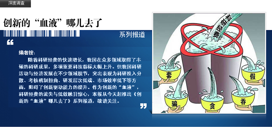 | 統(tǒng)計(jì)顯示,2006年以來(lái),我國(guó)科研投入進(jìn)入快速增長(zhǎng)時(shí)期,2013年我國(guó)全社會(huì)研發(fā)投入已達(dá)1.19萬(wàn)億元,占全球研發(fā)投入比重達(dá)到11.7%,規(guī)模居世界前列。多家科技型企業(yè)負(fù)責(zé)人對(duì)《經(jīng)濟(jì)參考報(bào)》記者反映,隨著科技經(jīng)費(fèi)快速大幅增長(zhǎng),科研管理體制中的某些弊端也暴露無(wú)遺,一些政策縫隙被撕裂、政策漏洞被擊穿,科技投入中途截流、跑冒滴漏普遍,甚至被套取挪用。 | |