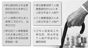“職業(yè)年金是機關(guān)事業(yè)單位工作人員的補充養(yǎng)老保險!苯鹁S剛說。辦法明確,職業(yè)年金所需費用由單位和工作人員個人共同承擔。