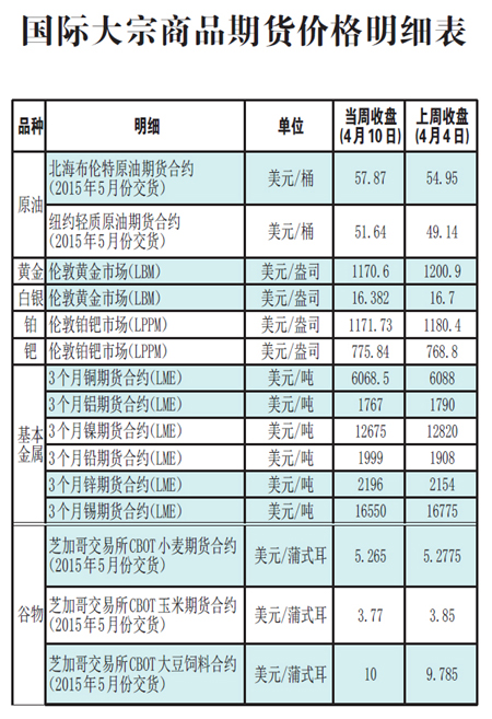 國(guó)際大宗商品期貨價(jià)格明細(xì)表[2015-4-13]