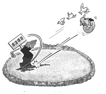 在球場(chǎng)違規(guī)建設(shè)并存續(xù)的同時(shí),海涂林場(chǎng)的一些職工一直在為取締違規(guī)高爾夫球場(chǎng)而奔忙。職工們多次反映后也曾引起過重視,國(guó)土資源部等部門曾于2008年5月11日對(duì)悅達(dá)高爾夫的發(fā)球臺(tái)、球道及果嶺進(jìn)行了強(qiáng)制拆毀并恢復(fù)原貌為公園,可惜一年后又被重新恢復(fù)為高爾夫球場(chǎng)。射陽縣體育局一份公開文件則顯示,2008年5月12日局有關(guān)人員前往射陽島體育公園實(shí)地辦公,將縣政府采購(gòu)的12套健身路徑和省體育局下?lián)艿囊惶捉∩砺窂揭黄鹚椭辽潢枍u生態(tài)體育公園并全部安裝到位。今年1月底,《經(jīng)濟(jì)參考報(bào)》記者在射陽縣體育局副局長(zhǎng)劉叢坤的陪同下走進(jìn)悅達(dá)高爾夫發(fā)現(xiàn),當(dāng)年下?lián)艿?3套健身器材依稀可見殘存的少部分,但顯然已經(jīng)很少人使用,多數(shù)淹沒在球道邊側(cè)和草坪中間。針對(duì)體育公園為什么不讓老百姓進(jìn)入的問題,劉叢坤笑著表示:“體育公園主打項(xiàng)目是高爾夫,不還是體育類的嗎?”