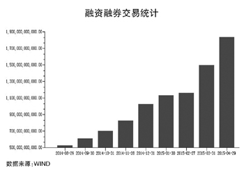 而從推動本輪股市上漲的核心因素之一——杠桿資金的進場速度來看,投資者做多的情緒依然十分強烈。WIND統(tǒng)計數(shù)據(jù)顯示,截至4月29日,滬深兩市的融資融券余額已經(jīng)達到了1.83萬億元,其中融資余額達1.825萬億元。2014年年底,滬深兩市的融資融券余額僅為1.13萬億元。這意味著,僅僅四個月的時間,滬深兩市的杠桿資金就增加了7000億元,而且基本上是融資買入。
