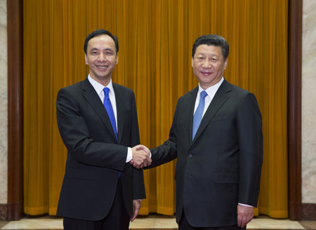 5月4日,中共中央總書記習(xí)近平在北京人民大會堂會見朱立倫主席率領(lǐng)的中國國民黨大陸訪問團(tuán)。習(xí)近平就建設(shè)兩岸命運(yùn)共同體提出5點(diǎn)主張。習(xí)近平強(qiáng)調(diào),兩岸關(guān)系處于新的重要節(jié)點(diǎn)上。兩岸關(guān)系路應(yīng)該如何走,是擺在兩岸所有政黨和社會各界面前的一個重大問題,攸關(guān)中華民族和國家未來,攸關(guān)億萬民眾福祉,需要我們大家認(rèn)真思考。習(xí)近平表示,我們愿意首先同臺灣同胞分享發(fā)展機(jī)遇,愿意優(yōu)先對臺灣開放,并且對臺灣同胞開放的力度要更大一些。