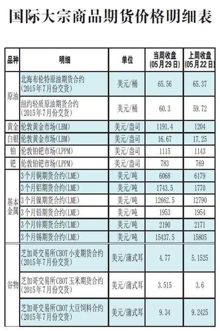 國際大宗商品期貨價(jià)格明細(xì)表[2015-6-1]