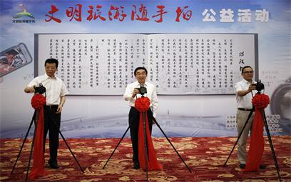 啟動(dòng)儀式上,主辦方發(fā)出了“文明旅游隨手拍”公益活動(dòng)倡議,號(hào)召全社會(huì)攜起手來(lái),為文明旅游行為點(diǎn)贊,曝光旅游不文明行為,共同營(yíng)造扶正祛邪、文明旅游的社會(huì)氛圍,為弘揚(yáng)社會(huì)主義核心價(jià)值觀,推動(dòng)全社會(huì)文明程度提升,增強(qiáng)國(guó)家軟實(shí)力做出貢獻(xiàn)。旅游企業(yè)代表,領(lǐng)隊(duì)、導(dǎo)游、游客代表,以及媒體代表共同簽署倡議書(shū)。