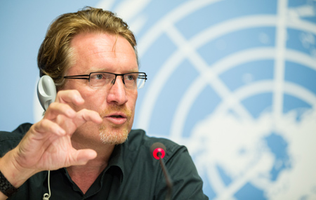 6月16日,在瑞士日內(nèi)瓦萬國宮,世界衛(wèi)生組織發(fā)言人克里斯蒂安·林德梅爾出席新聞發(fā)布會(huì)。林德梅爾重申,中東呼吸綜合征(MERS)病毒不具備可持續(xù)的人際傳播能力。世衛(wèi)組織當(dāng)日在日內(nèi)瓦就中東呼吸綜合征召開第9次緊急遠(yuǎn)程會(huì)議,商討關(guān)于中東呼吸綜合征流行病學(xué)的最新技術(shù)更新以及提供未來應(yīng)對(duì)該疾病的建議。