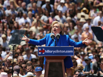6月13日,宣布參加2016年美國總統(tǒng)競選的民主黨人希拉里·克林頓在美國紐約羅斯福島舉行首場競選集會。