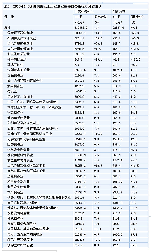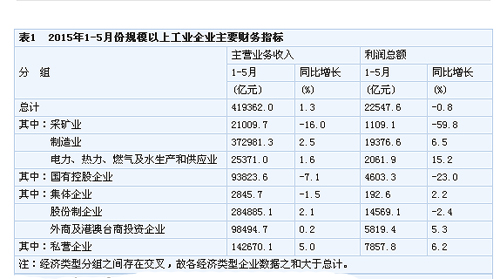 1-5月份,全國(guó)規(guī)模以上工業(yè)企業(yè)實(shí)現(xiàn)利潤(rùn)總額22547.6億元,同比下降0.8%,降幅比1-4月份收窄0.5個(gè)百分點(diǎn)。