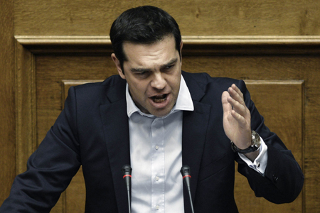 6月28日,希臘總理齊普拉斯在雅典向議會發(fā)表講話。 希臘議會28日凌晨通過一項議案,決定把國際債權(quán)人提出的解決希臘債務(wù)危機(jī)問題的協(xié)議草案交全民公決。全民公決投票將于7月5日舉行。