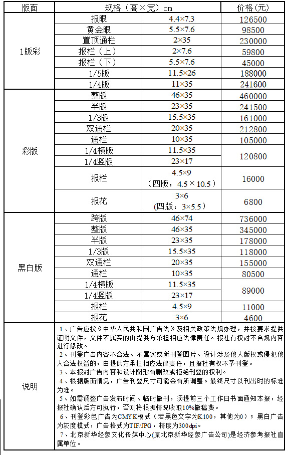 | 《經(jīng)濟(jì)參考報》報紙廣告刊例(2020) |