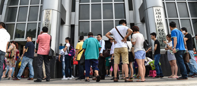 6月初,市民在深圳市房地產權登記中心外排隊等候取號。 記者
