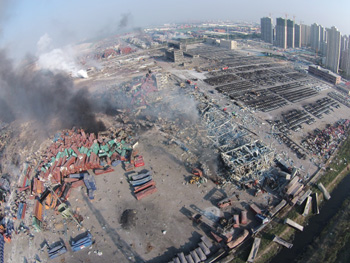 8月13日拍攝的爆炸現(xiàn)場。 新華社記者 岳月偉/攝 |
