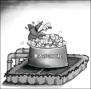 除了惠農(nóng)示范工程,近年來國家還推出了糧食補(bǔ)貼、農(nóng)機(jī)補(bǔ)貼、病害豬無害化處理專項資金、扶貧培訓(xùn)專項資金、電影下鄉(xiāng)專項資金等專項補(bǔ)貼或資金。原本為保障和改善民生的惠民政策,在執(zhí)行過程中,卻被一些腐敗分子鉆了空子,惠民資金和補(bǔ)貼被虛報冒領(lǐng)、侵吞挪用的現(xiàn)象屢見不鮮。