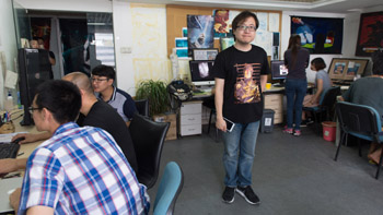 ??? 圖為在北京“十月動畫工坊”工作室拍攝的《大圣歸來》導(dǎo)演田曉鵬。 |