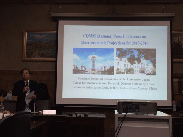 廈門大學、日本神戶大學與新華社《經(jīng)濟參考報》9日在神戶聯(lián)合舉行“中國宏觀經(jīng)濟國際研討會暨‘中國季度宏觀經(jīng)濟模型(CQMM)2015年秋季預測發(fā)布會’”。廈門大學宏觀經(jīng)濟研究中心課題組在發(fā)布會上指出,2015年中國經(jīng)濟雖然面臨下行壓力,但經(jīng)濟增長率有望實現(xiàn)7.0%的政策目標,預計全年GDP增速為7.10%。比2014年小幅回落0.2個百分點。CPI預計上漲1.62%,通貨膨脹率將維持低位穩(wěn)定。