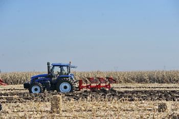 10月14日,一臺土地深松機在吉林省榆樹市環(huán)城鄉(xiāng)萬龍村的田間作業(yè)。 新華社記者 張楠/攝