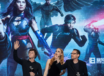 5月19日,電影《X戰(zhàn)警:天啟》見面會在北京舉行,主演伊萬·彼得斯、索菲·特納以及該片導演布萊恩·辛格(從左至右)同粉絲互動。 記者 陳君清/攝? |