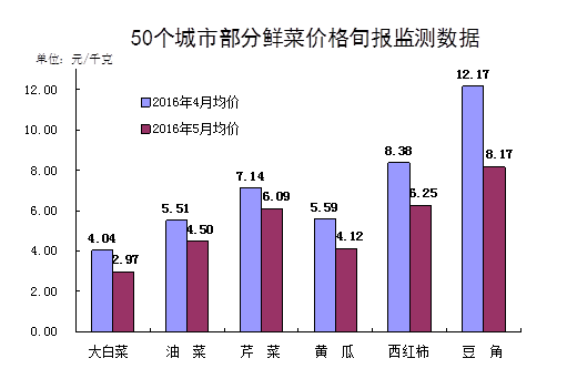 從環(huán)比看,CPI環(huán)比下降0.5%,主要是受鮮菜價格下降較多的影響。年初寒潮天氣襲擊我國大部分地區(qū),影響了鮮菜的生產(chǎn)和運(yùn)輸,鮮菜價格高位運(yùn)行,較往年同期上漲較多。隨著應(yīng)季鮮菜上市,市場供應(yīng)逐步增加,鮮菜價格趨于正常。5月份鮮菜價格環(huán)比下降21.5%,影響CPI環(huán)比下降約0.64個百分點(diǎn),超過CPI環(huán)比總降幅。從50個城市主要食品價格旬報監(jiān)測看,蔬菜價格回落幅度較大,部分鮮菜價格下降幅度甚至超過三成。5月份豬肉價格環(huán)比繼續(xù)上漲,漲幅為2.3%,影響CPI環(huán)比上漲約0.07個百分點(diǎn)。國內(nèi)成品油價格兩次提價,汽油、柴油價格環(huán)比分別上漲3.7%和3.8%,合計影響CPI環(huán)比上漲約0.06個百分點(diǎn)。