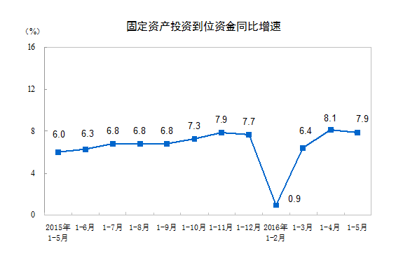 ? 2016年1-5月份,全國(guó)固定資產(chǎn)投資(不含農(nóng)戶)187671億元,同比名義增長(zhǎng)9.6%,增速比1-4月份回落0.9個(gè)百分點(diǎn)。從環(huán)比速度看,5月份固定資產(chǎn)投資(不含農(nóng)戶)增長(zhǎng)0.49%。