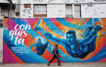 6月24日,里約熱內(nèi)盧街上的奧運會宣傳畫。2016年8月5日至21日,第31屆夏季奧運會將在巴西的里約熱內(nèi)盧舉行。 新華社發(fā)? |