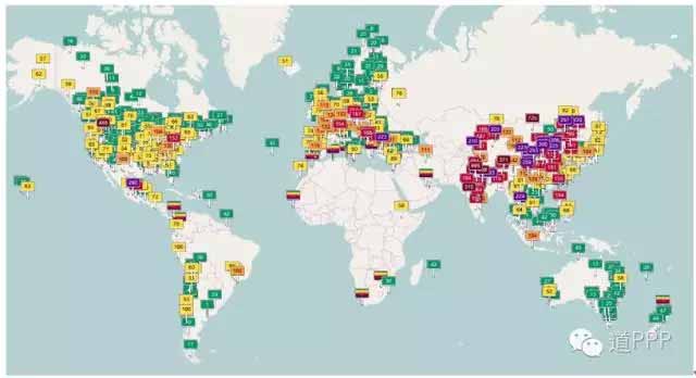 圖1 全球?qū)崟r(shí)空氣質(zhì)量跟蹤圖(2016年11月2日)
