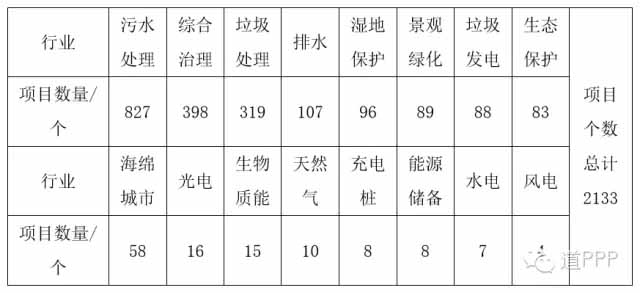表1 環(huán)保PPP領(lǐng)域各行業(yè)入庫(kù)項(xiàng)目數(shù)量匯總表