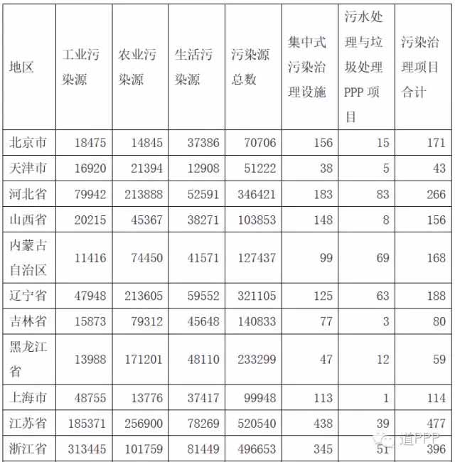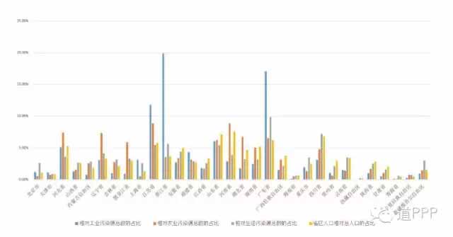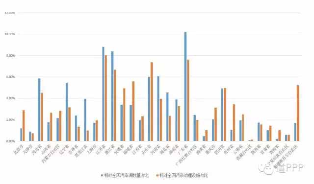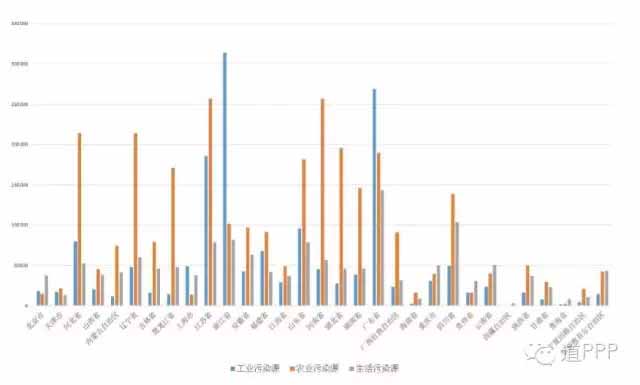 除了以上幾點(diǎn)外,輻射、噪音等嚴(yán)重程度也是評(píng)價(jià)環(huán)境問(wèn)題的重點(diǎn),但因?yàn)樵谖覈?guó)這些問(wèn)題尚不突出,且相應(yīng)的項(xiàng)目也并未落成,故此處先不對(duì)這些問(wèn)題做出延展。從中央層面來(lái)看,大氣、水、土壤的環(huán)境質(zhì)量監(jiān)測(cè)、污染源管理和排污權(quán)有償使用制度的推進(jìn)也是十三五期間環(huán)境保護(hù)工作的重點(diǎn),反應(yīng)在市場(chǎng)方面,目前推出的PPP項(xiàng)目也是符合此中央工作方針的。本文的下一章便主要討論各省區(qū)污染源情況和PPP項(xiàng)目總量對(duì)于環(huán)境治理需求的匹配程度。