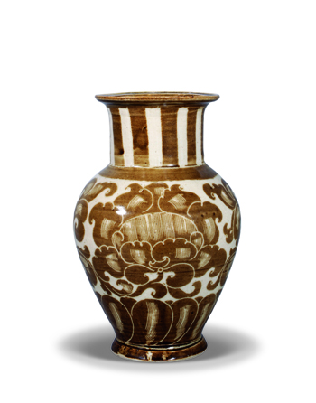 宋“定”刻花梅瓶則以590萬(wàn)港幣成交。定窯為趙宋名物,千百年來(lái)備受文人士大夫推崇,享譽(yù)盛名。此瓶造型別致,未見(jiàn)相同樣式。裝飾風(fēng)格獨(dú)特,通體剔花,線條活潑流暢。