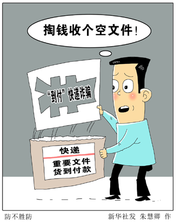 ??? 近日,湖南的田先生收到一份標(biāo)注“重要文件”的“貨到付款”快遞,以為是公司發(fā)的,沒多想便簽收了,打開包裹發(fā)現(xiàn)“商品”竟是幾張廢紙。