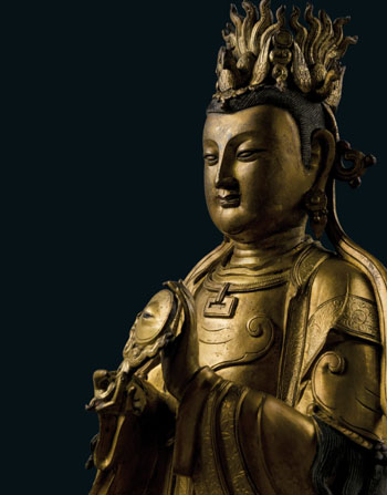 清玩聚珍作為古天一拍賣的常設(shè)專場(chǎng),匯集了玉器及文房雜項(xiàng)。今年的專場(chǎng)中增設(shè)了“紫毫相光”宗教題材藝術(shù)品拍賣,其中一件明代銅鎏金西王母像傳承有序,來(lái)源清晰,值得關(guān)注。本尊西王母像首次出現(xiàn)于香港佳士得1999年春季拍賣會(huì)上,后來(lái)被臺(tái)灣鴻禧美術(shù)館購(gòu)藏,在雪藏近20年后再次亮相拍場(chǎng)。此尊造像尺寸較大,雖為西王母坐姿象,但高度達(dá)到55厘米,且鎏金精美,制作工藝精致,品相完好,這在古代道教造像中是極為少見(jiàn)的。