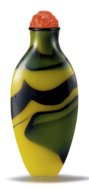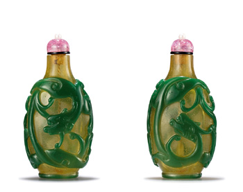 清 黃地套綠料螭龍紋鼻煙壺 |