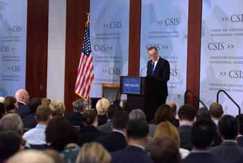 ??? 9月18日,美國(guó)貿(mào)易代表羅伯特·萊特希澤在華盛頓智庫(kù)戰(zhàn)略與國(guó)際問(wèn)題研究中心發(fā)表演講。萊特希澤說(shuō),減少貿(mào)易逆差是特朗普政府貿(mào)易政策的優(yōu)先考慮事項(xiàng),美國(guó)將尋求對(duì)等的貿(mào)易關(guān)系。這一表態(tài)加深了觀察人士對(duì)美國(guó)和他國(guó)貿(mào)易沖突加劇的擔(dān)憂(yōu)。記者 殷博古 攝 |