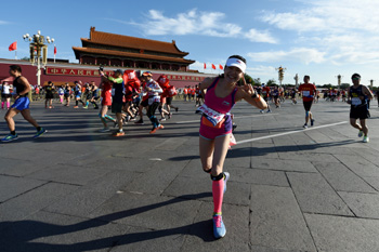 ??? 9月17日,參賽選手從天安門(mén)前經(jīng)過(guò)。當(dāng)日,2017北京馬拉松賽在北京天安門(mén)廣場(chǎng)開(kāi)跑。記者 鞠煥宗 攝 |