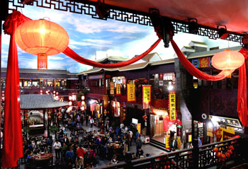 ??? 據(jù)國家旅游局?jǐn)?shù)據(jù)中心綜合測算,國慶加中秋“超級(jí)黃金周”期間,全國共接待國內(nèi)游客7.05億人次,實(shí)現(xiàn)國內(nèi)旅游收入5836億元,按可比口徑前7天與2017年同比計(jì)算,分別增長11.9%和13.9%。另據(jù)商務(wù)部監(jiān)測,10月1日至8日,全國零售和餐飲企業(yè)實(shí)現(xiàn)銷售額約1.5萬億元,日均銷售額比2016年“十一”黃金周增長10.3%。圖為游客在河南開封小宋城美食街參觀游覽。記者 朱祥 攝 |