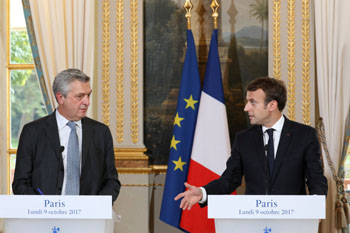 ??? 10月9日,在法國巴黎愛麗舍宮,法國總統(tǒng)馬克龍(右)與聯(lián)合國難民事務(wù)高級(jí)專員菲利波·格蘭迪出席聯(lián)合新聞發(fā)布會(huì)。馬克龍9日在會(huì)見格蘭迪后發(fā)表公開聲明說,法國將在難民事務(wù)方面進(jìn)行多項(xiàng)改革,提高效率,幫助難民融入法國社會(huì),同時(shí)更嚴(yán)格地遣返不符合避難條件的人。新華社/路透 |
