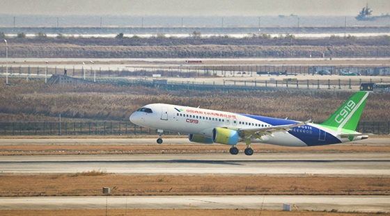 C919飛機(jī)是我國按照與國際接軌的適航標(biāo)準(zhǔn)自主研制的150座級(jí)單通道干線飛機(jī),2008年年底完成項(xiàng)目可研論證,2015年11月在上??傃b下線,2017年5月5日在浦東國際機(jī)場完成首架機(jī)首飛,目前擁有國內(nèi)外27家客戶的785架訂單。