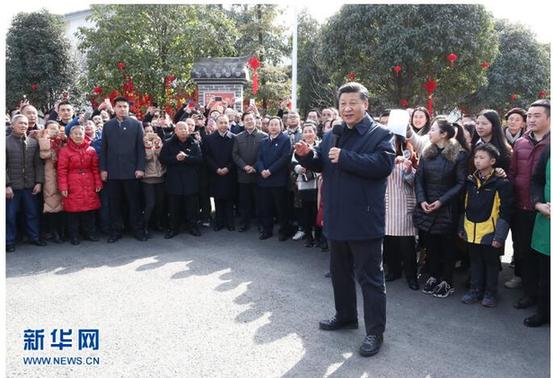 春節(jié)在即,村里照全家福、寫春聯(lián)福字、包湯圓等新春民俗活動豐富多彩。習(xí)近平每到一處,都駐足同群眾交流,他說:“我是人民的勤務(wù)員,讓人民過上好日子是我們共產(chǎn)黨人的初心、宗旨?!迸R行前,村民們歡呼著簇?fù)砩蟻硐蚩倳洶菽?,?xí)近平熱情同村民們打招呼,祝鄉(xiāng)親們安逸舒適、新春快樂、闔家幸福。
