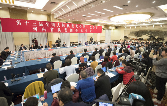 3月6日,十三屆全國人大一次會(huì)議河南代表團(tuán)全體會(huì)議向媒體開放。新華社記者 丁海濤 攝