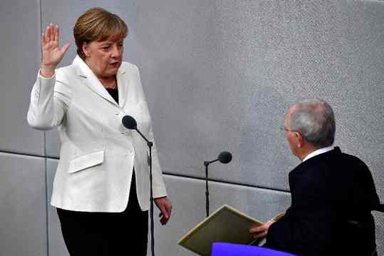 3月14日,在德國柏林,安格拉·默克爾(左)參加宣誓就職儀式。