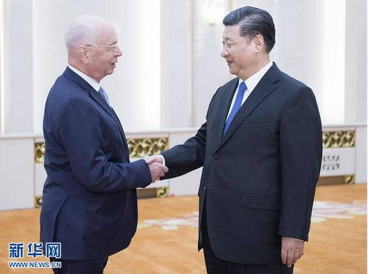 4月16日,國家主席習(xí)近平在北京人民大會堂會見世界經(jīng)濟(jì)論壇主席施瓦布。 新華社記者李濤攝