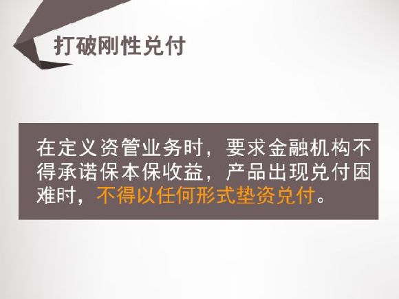 央行有關(guān)負(fù)責(zé)人介紹,相比征求意見(jiàn)稿,資管新規(guī)在非標(biāo)準(zhǔn)化債權(quán)類資產(chǎn)投資、產(chǎn)品凈值化管理、消除多層嵌套、統(tǒng)一杠桿水平、合理設(shè)置過(guò)渡期等方面進(jìn)行了修改完善。