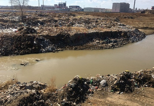 4月7日,天義鎮(zhèn)崗崗營子村,西遼河上游的老哈河從垃圾場中間流過。(新華社記者 王靖 攝)
