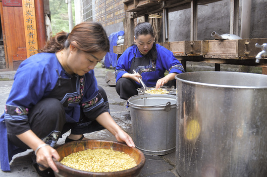 湖南省吉首市坪朗豆腐制作技藝非物質(zhì)文化遺產(chǎn)傳承人石清香出身“豆腐世家”,她做的豆腐因?yàn)槎棺幼苑N且只用本地山泉水制作而廣受好評(píng),供不應(yīng)求。
