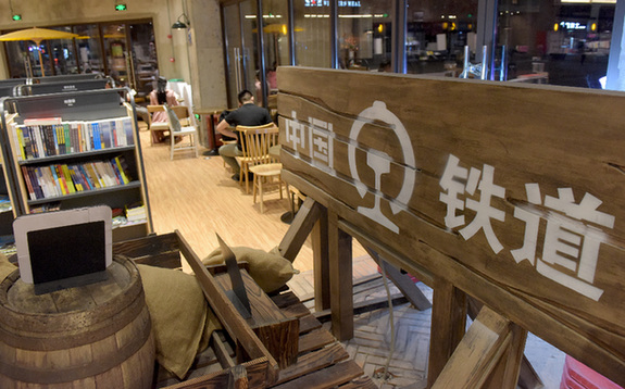 蚌埠新華書(shū)店延安路店采用中國(guó)鐵路元素和鐵道周邊文化為主題裝修,展現(xiàn)了蚌埠這座“火車(chē)?yán)瓉?lái)的城市”獨(dú)特的歷史畫(huà)面,營(yíng)造懷舊、舒適的讀書(shū)環(huán)境,受到市民青睞。記者 郭晨 攝?