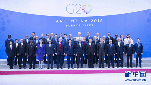 當?shù)貢r間11月30日,二十國集團領(lǐng)導(dǎo)人第十三次峰會在阿根廷布宜諾斯艾利斯舉行。國家主席習(xí)近平出席第一階段會議并發(fā)表題為《登高望遠,牢牢把握世界經(jīng)濟正確方向》的重要講話。這是習(xí)近平同其他與會領(lǐng)導(dǎo)人合影。 新華社記者 李濤 攝