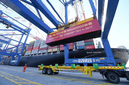 廈門港務控股集團有限公司黨委書記、董事長陳志平介紹,廈門港務作為經(jīng)濟特區(qū)的“實干者”,借助“海絲”核心區(qū)和廈門自貿(mào)區(qū)的多重區(qū)位優(yōu)勢,以創(chuàng)新驅(qū)動為核心致力于廈門港及相關產(chǎn)業(yè)鏈的持續(xù)增長。如近年來先后落地國際貿(mào)易“單一窗口”、郵輪“進口直供”、廈門港集裝箱智慧物流項目、“中轉(zhuǎn)服務保障計劃”等創(chuàng)新舉措,直接推動了港城產(chǎn)業(yè)發(fā)展繁榮。2017年,廈門港年吞吐量首次突破1000萬標箱,其中廈門港務貢獻了八成的業(yè)務量,真正體現(xiàn)了國企在改革開放中的中流砥柱作用。