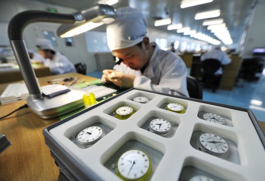 一名工人在海鷗手表車間安裝手表。記者 岳月偉 攝
