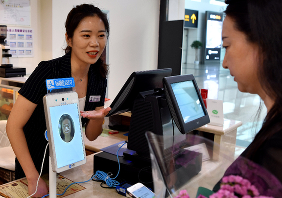 近日,鄭州新鄭國(guó)際機(jī)場(chǎng)T2航站樓內(nèi)的首批商戶開通了刷臉支付服務(wù)。顧客在購(gòu)物APP里開通刷臉支付功能后,付款時(shí)只需將臉對(duì)準(zhǔn)攝像頭,即可完成支付。整個(gè)支付過(guò)程無(wú)需輸入密碼,更加智能便捷。記者 李嘉南 攝
