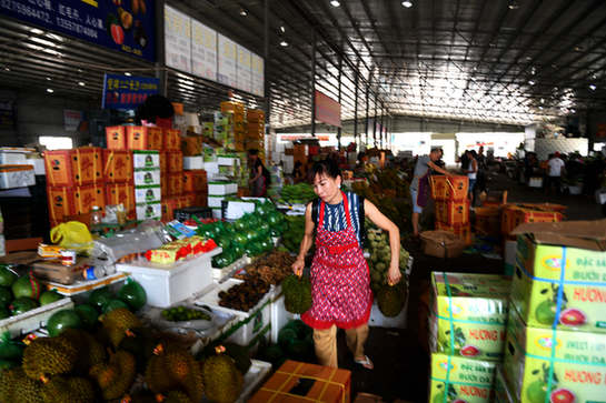 走在憑祥街頭小巷,操著各地方言的人們川流不息,使人絲毫感覺(jué)不出這只是一個(gè)10多萬(wàn)人口的邊境小縣,來(lái)自不同地方的人們做各樣生意。滿載火龍果、榴蓮等水果及其他貨物的大貨車排如長(zhǎng)龍,各式各樣的東南亞食品、家具在此集散。