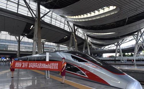 2017年9月21日,“復(fù)興號”以350公里時速在京滬線上正式開跑,樹立了世界高鐵建設(shè)運營新標桿。
